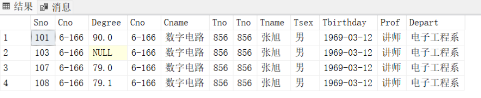 WHERE TNAME='张旭' AND SNAME='曾华庆'