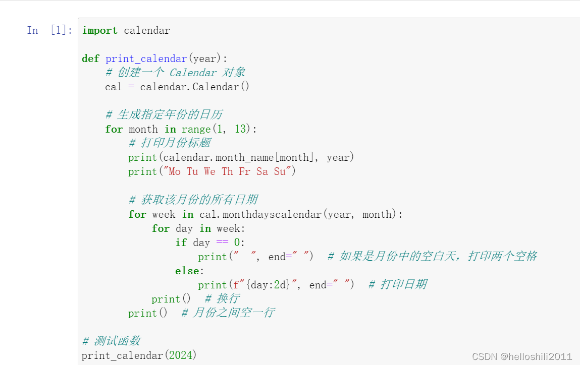 print(" ", end=" ") # 如果是月份中的空白天,打印两个空格