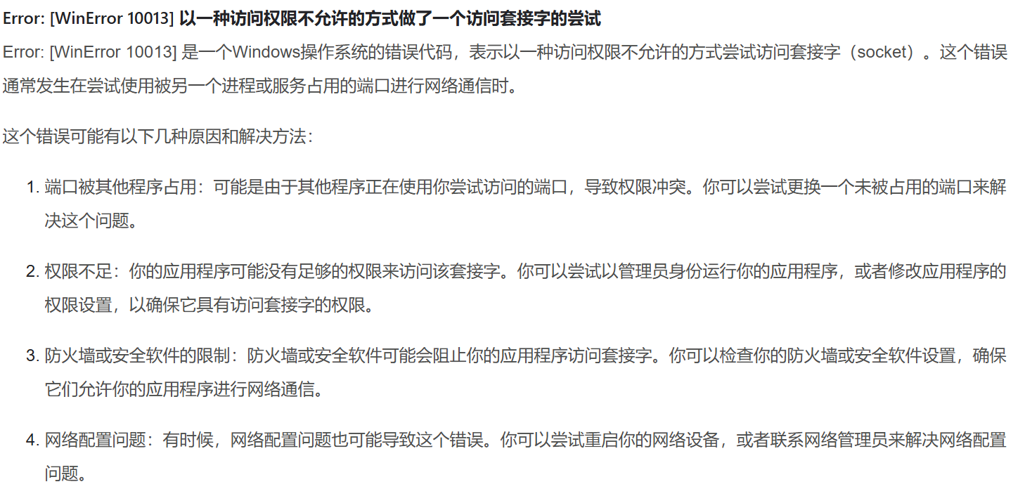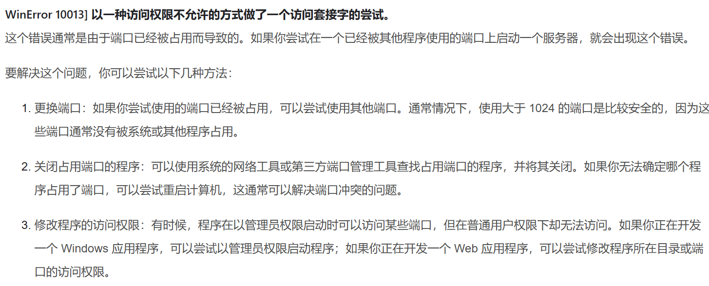 - 尝试解决1.更换端口号->不能解决2.优快云搜索