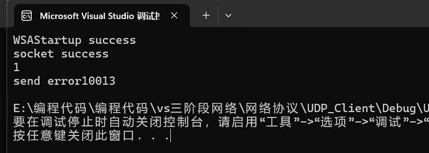int senNum = sendto(sock,sendBUf,sendLen,0,(sockaddr*) & addrTo,sizeof(addrTo));