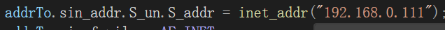 addrTo.sin_addr.S_un.S_addr = inet_addr(" 192.168.0.111");