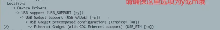 至此驱动修改完成,可以进入内核编辑界面了。主要是为了配置些没有默认打开的功能,比如ECM/PPP。