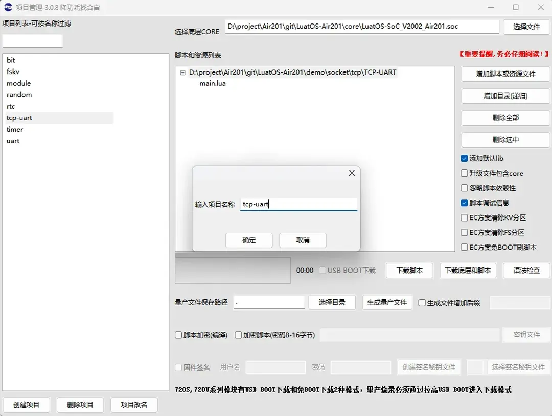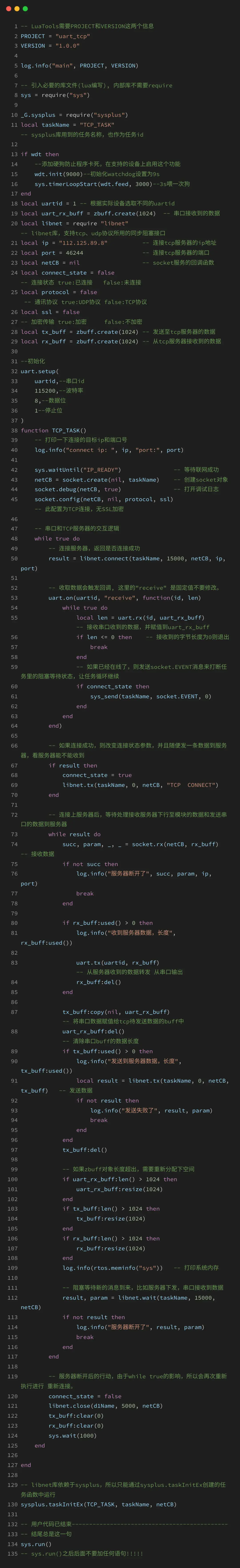 本小节教你使用LuatOS脚本语言,让Air201模组连接上一个TCP服务器,并且实现模组和服务器之间数据的双向传输。