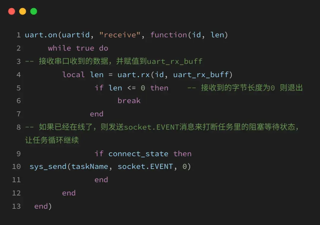这里使用uart.rx接口,和以zbuff的方式存储从uart1外部串口收到的数据--收取数据会触发回调。