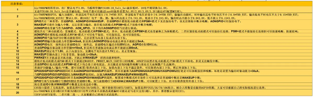 Air780E大部分管脚为普通GPIO(上图GPIO复用表格中灰色底色的IO);