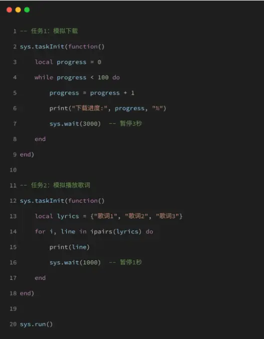 sys.taskInit(函数) 用来包裹你的任务代码;