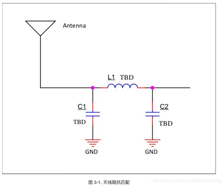 为达到最优 RF 性能,对外置天线的 π 型阻抗匹配电路路的要求如图 3-1 所示:
