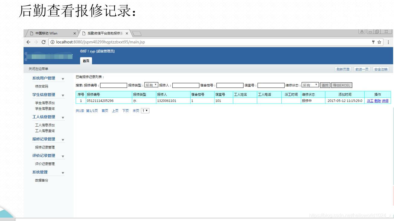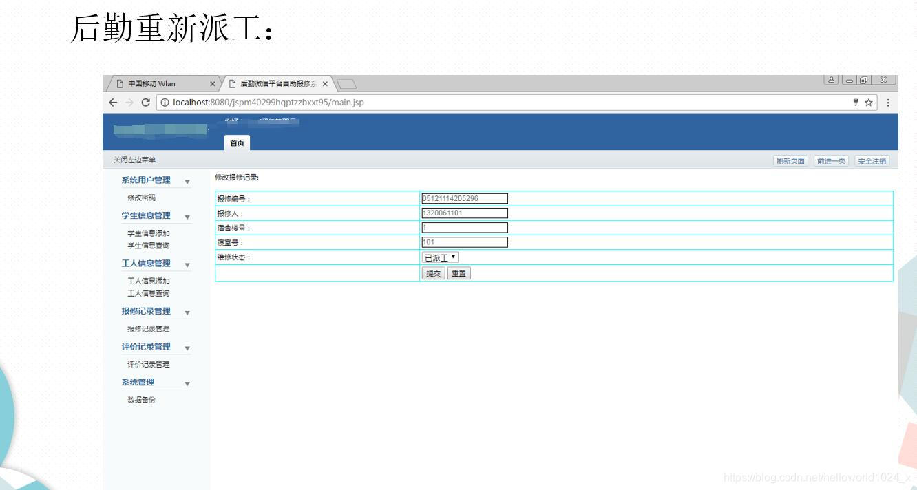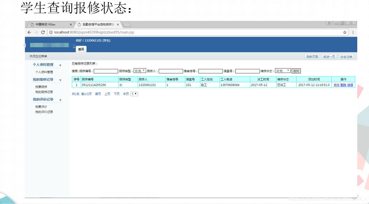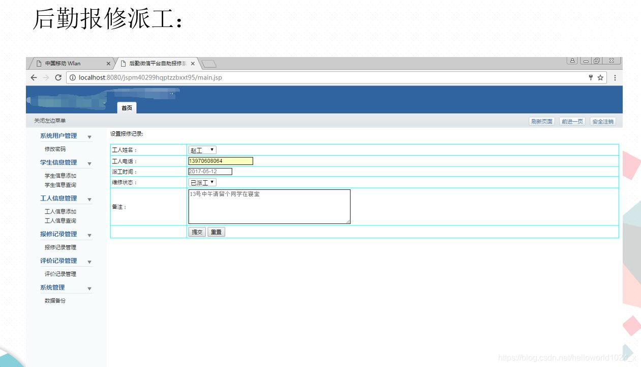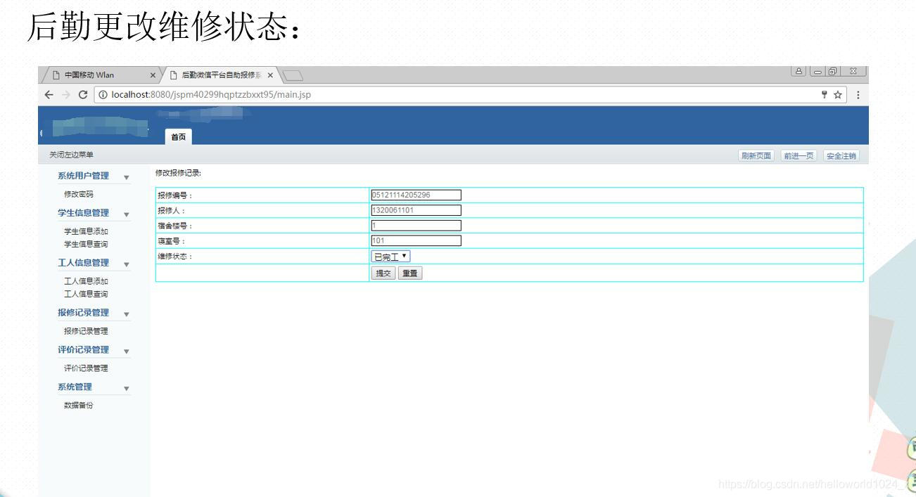 3Java+MySQL开发的《后勤微信平台自助报修系统》