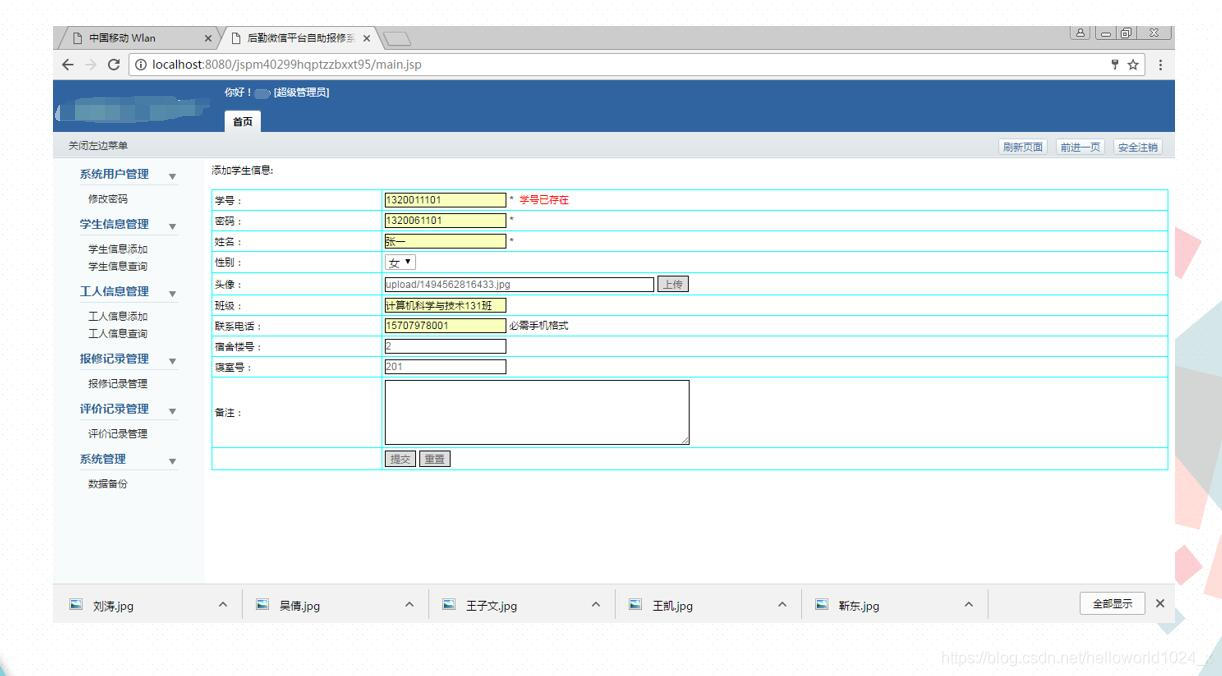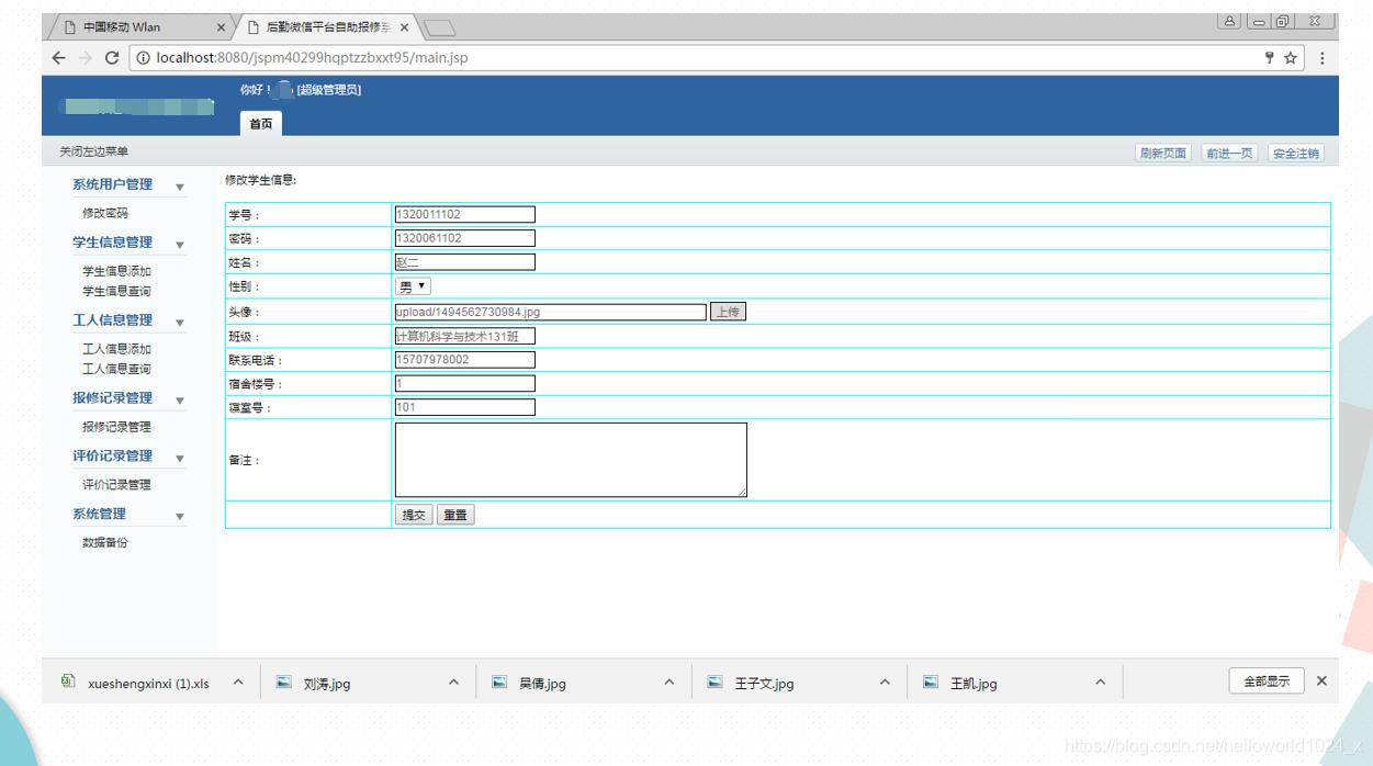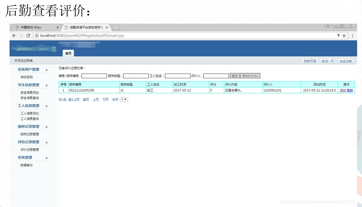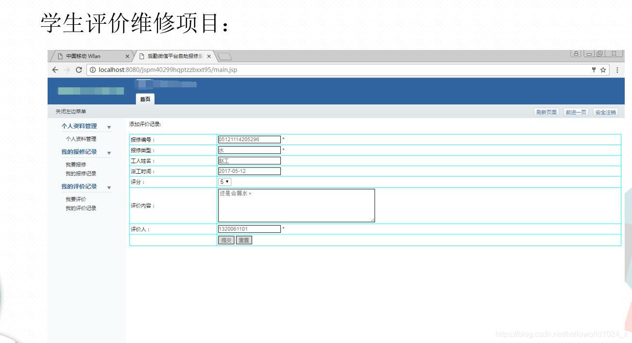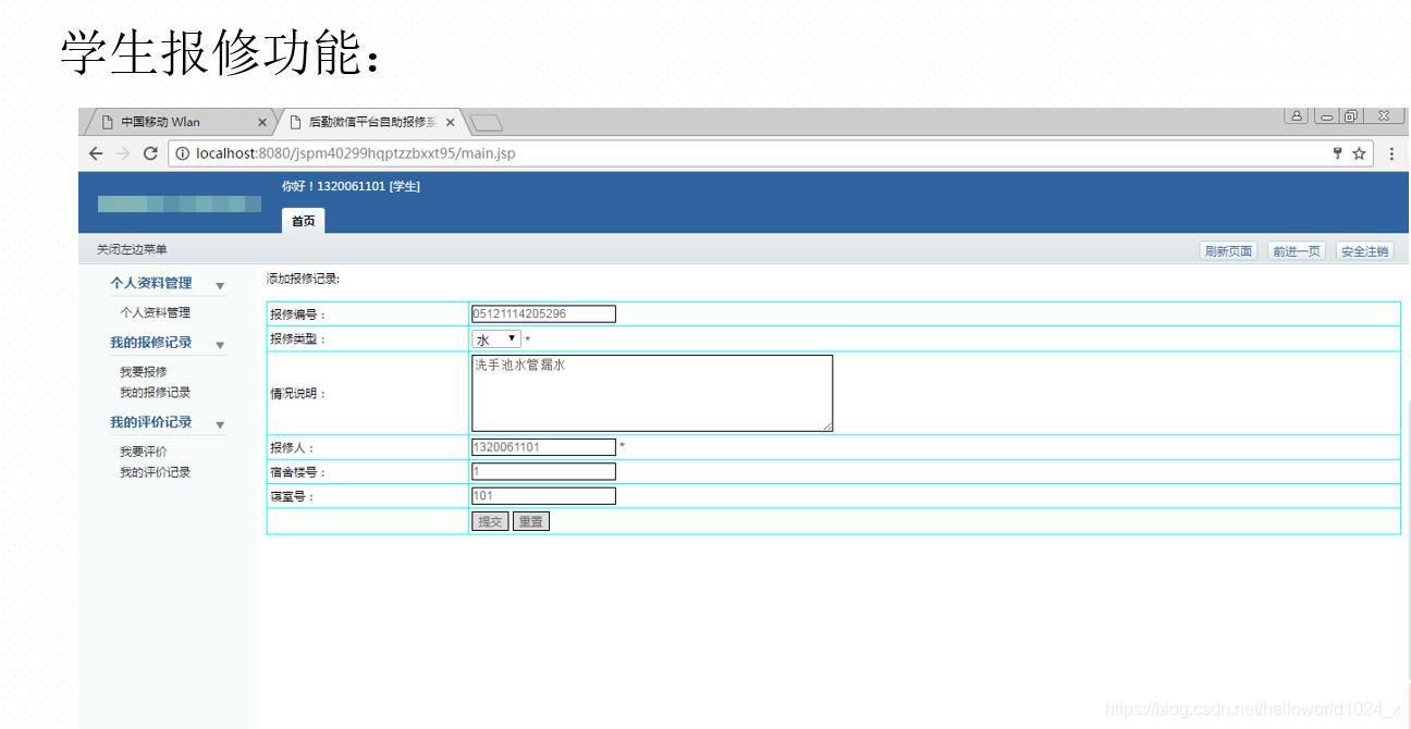 3Java+MySQL开发的《后勤微信平台自助报修系统》