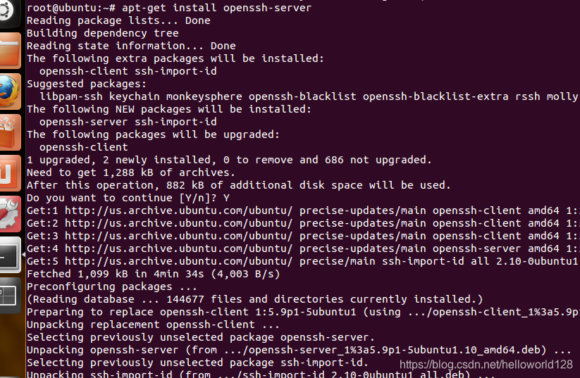下载openssh:apt-get install openssh-server
