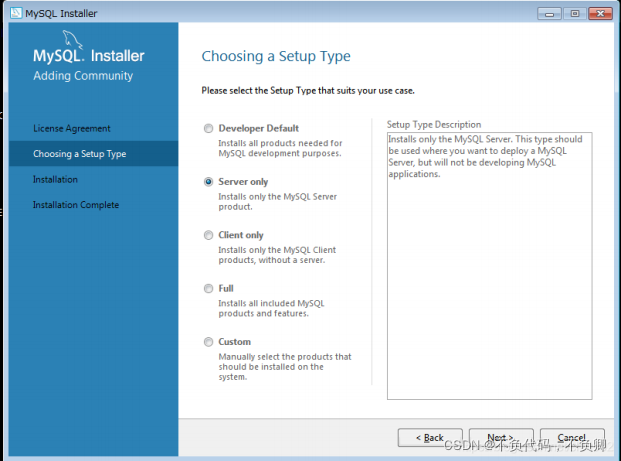 3.选“Server Only”,Next, 我只想安装服务器,你也可以选第一个Developer Default,这样