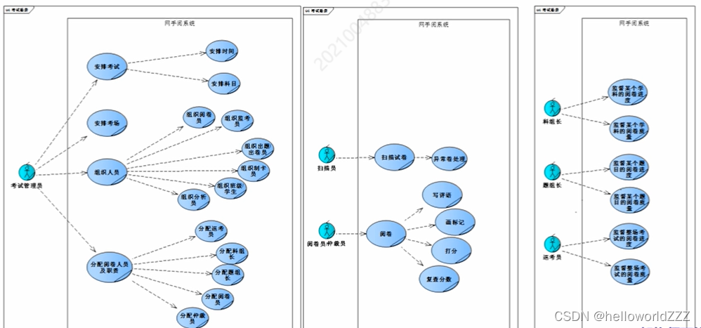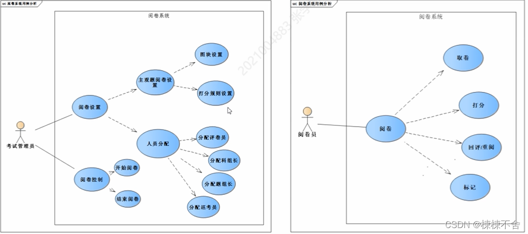 系统用例是指系统所使用的案例,由业务用例所推导出的用例。使用动词短语命名如添加用户、查询话费等。右图更加规范