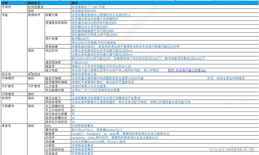 性能(关键重要用例的拆分如支持的并发、TPS等)、