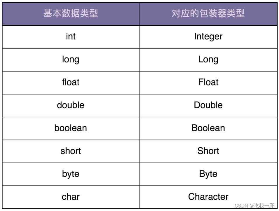 在加餐一中,我们讲到,Java为基本数据类型提供了对应的包装器类型。具体如下所示: