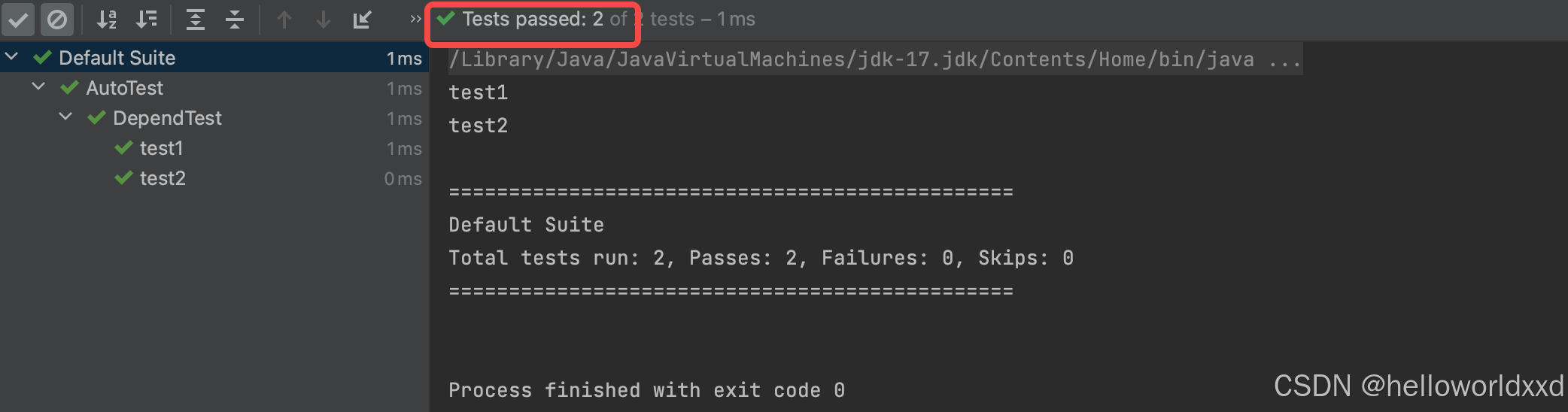 在测试方法2执行前必须执行测试方法1,如果测试方法1执行失败,测试方法2就不执行了;比如我们要执行下单的测试方法,需要依赖登录的测试方法,登录成功了才能继续跑下单的测试方法,否则就不会执行下单的测试方法