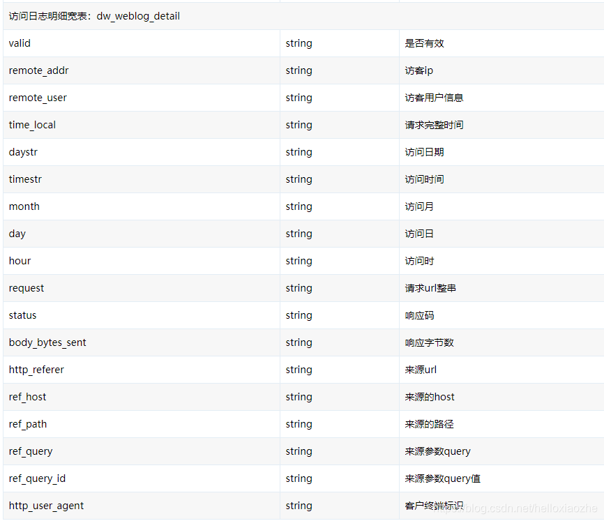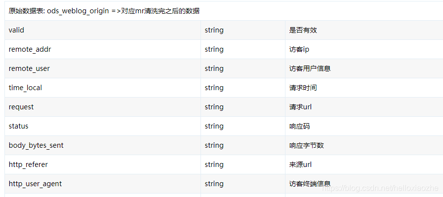 原始数据表: ods_weblog_origin =>对应mr清洗完之后的数据