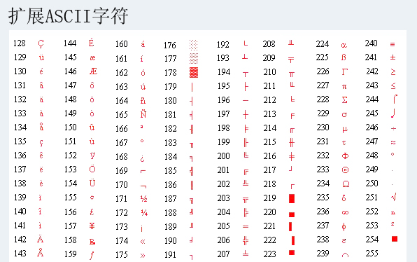 ASCII码表完整版