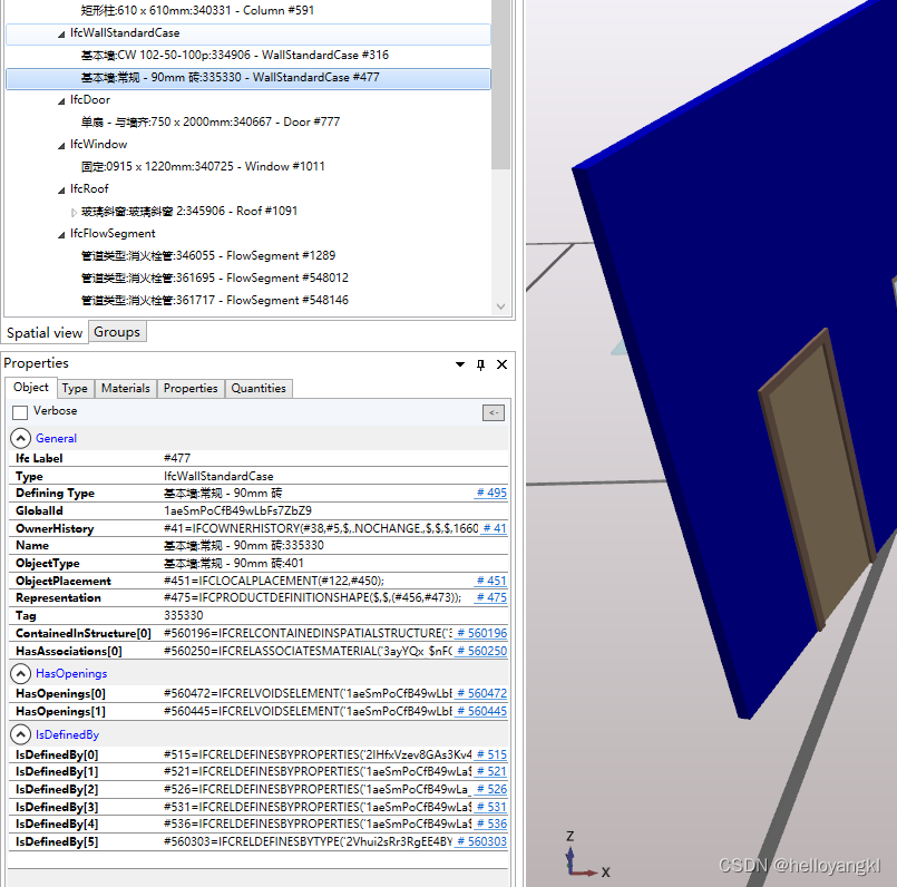 一扇门可以:插入作为一个开口的填料,那么IfcDoor有一个反向属性FillsVoids提供,或者是一个“独立的”门,那么IfcDoor没有反向属性FillsVoids提供。