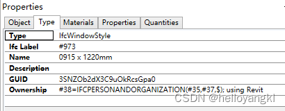 窗口实体(IfcWindow)定义了插入到项目空间上下文中的窗口的特定出现。窗口的实际参数和/或它的形状是在IfcWindowStyle中定义的,IfcWindow通过指向IfcRelDefinesByType的反向关系IsDefinedBy与之相关。IfcWindowStyle还为内衬(IfcWindowLiningProperties)和面板(IfcWindowPanelProperties)定义了特定的属性。因此:IfcWindow是发生定义(或项目实例);IfcWindowStyle是具体定义(或项目类型)
