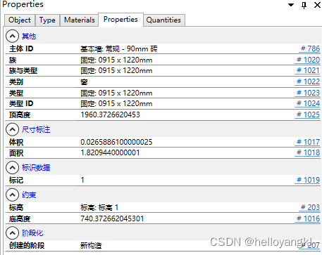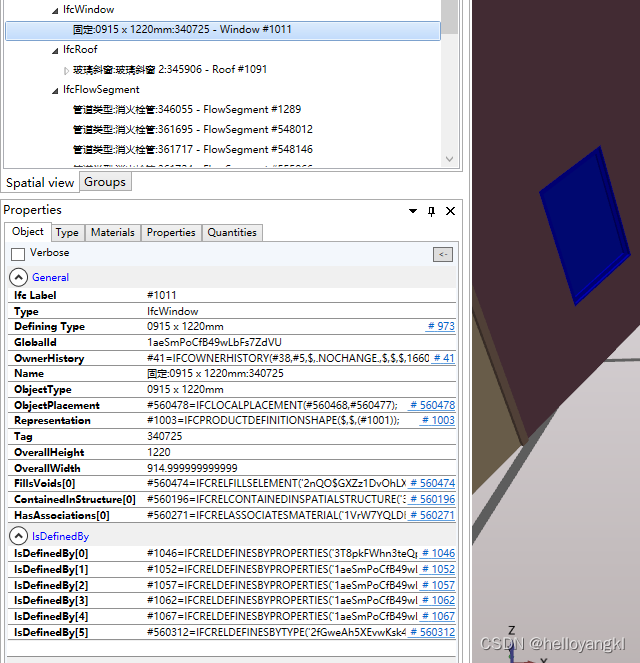 IfcWindow通常使用IfcRelFillsElement关系插入到IfcOpeningElement中(但不需要)。它还使用IfcRelContainedInSpatialStructure关系直接链接到项目的空间结构(这里通常链接到IfcBuildingStorey)。