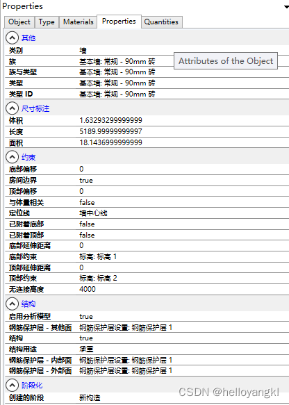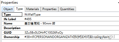 墙壁的材质由IfcMaterialLayerSetUsage定义,并由IfcRelAssociatesMaterial附加。它可以通过反向HasAssociations关系访问。材料层集必须给定(由where规则强制执行)。