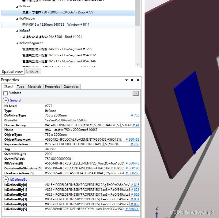门实体,IfcDoor,定义了插入到项目空间环境中的门的特定出现。