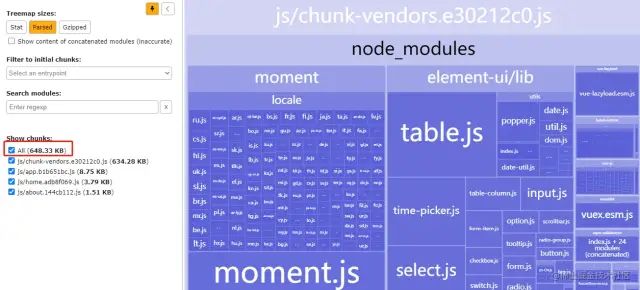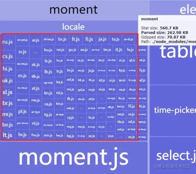 继续分析打包文件,项目中使用了 momentjs,发现打包后有很多没有用到的语言包
