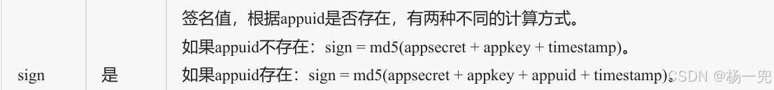 // 如果appuid不存在:sign = md5(appsecret + appkey + timestamp)