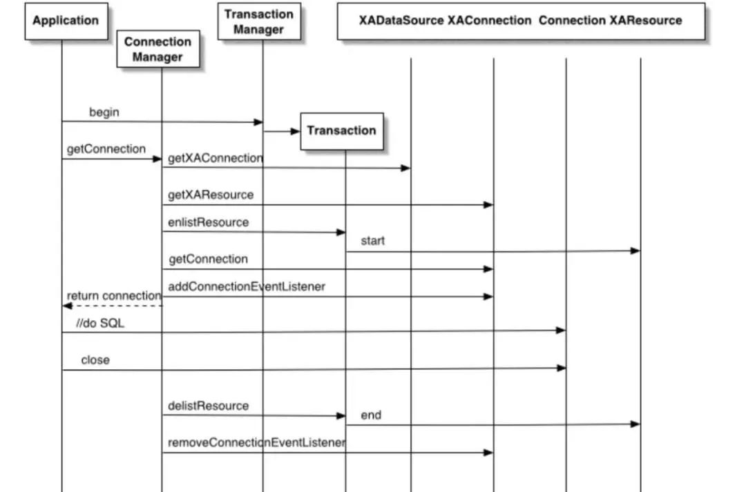 在XA规范中,数据库充当RM角色,应用需要充当TM的角色,即生成全局的txId,调用XAResource接口,把多个本地事务协调为全局统一的分布式事务。