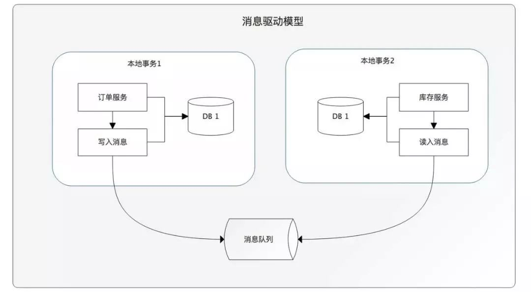 消息一致性方案是通过消息中间件保证上下游应用数据操作的一致性。基本思路是将本地操作和发送消息放在一个事务中,下游应用向消息系统订阅该消息,收到消息后执行相应操作。本质上是依靠消息的重试机制,达到最终一致性。消息驱动的缺点是:耦合度高,需要在业务系统中引入MQ,导致系统复杂度增加。