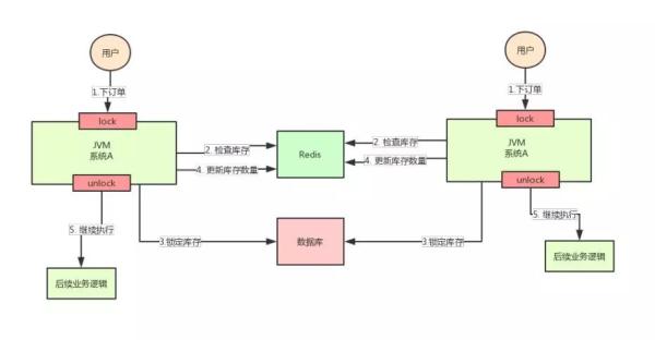 系统 A 是一个电商系统,目前是一台机器部署,系统中有一个用户下订单的接口,但是用户下订单之前一定要去检查一下库存,确保库存足够了才会给用户下单。