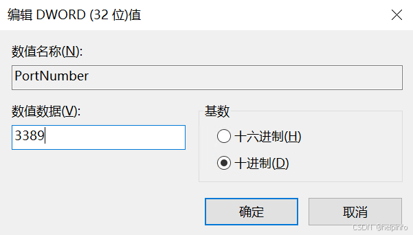 修改这两个位置中的PortNumber的值,修改成你想要的值。记得要切换成十进制。
