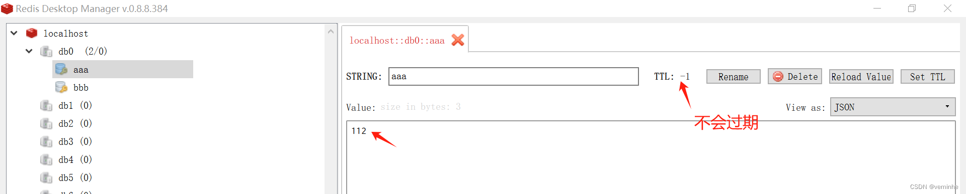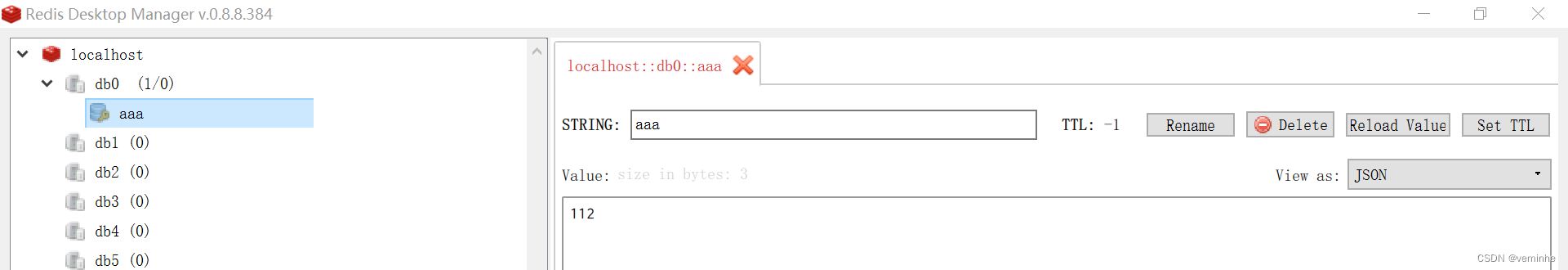 然后查看redis的缓存,aaa的值还是112