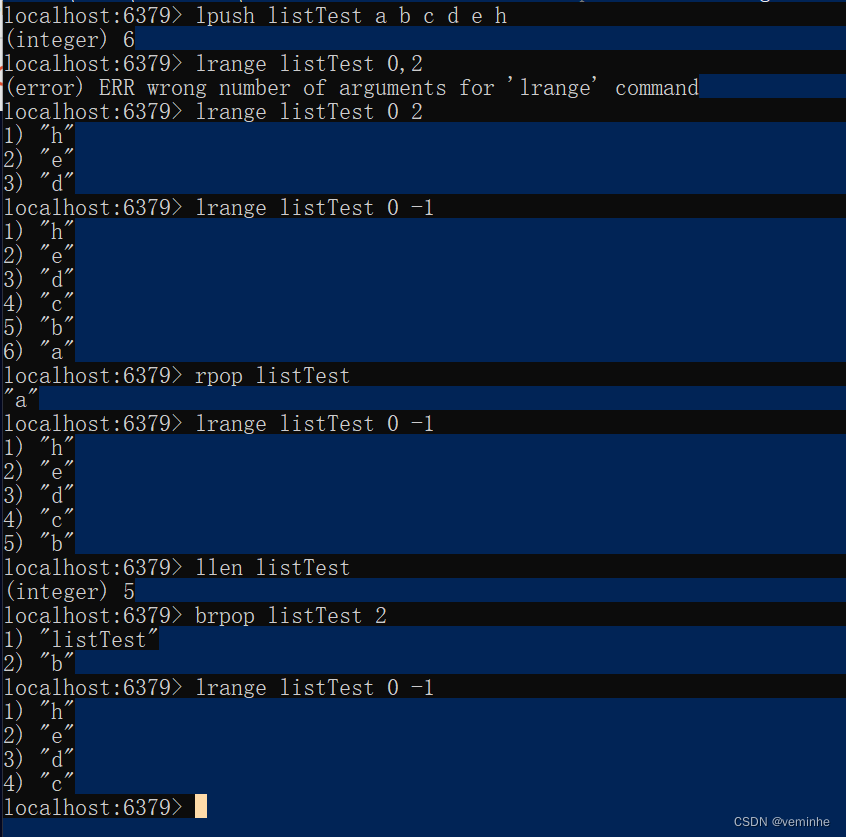 列表操作命令指令开头一般为l开头(LPUSH 、LRANGE 、RPOP 、LLEN 、BRPOP )