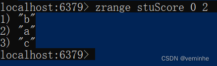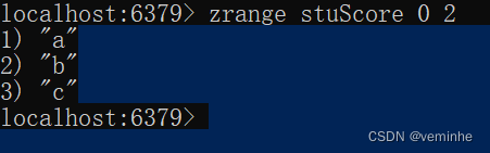 ZRANGE key start stop [WITHSCORES] 通过索引区间返回有序集合中指定区间内的成员。