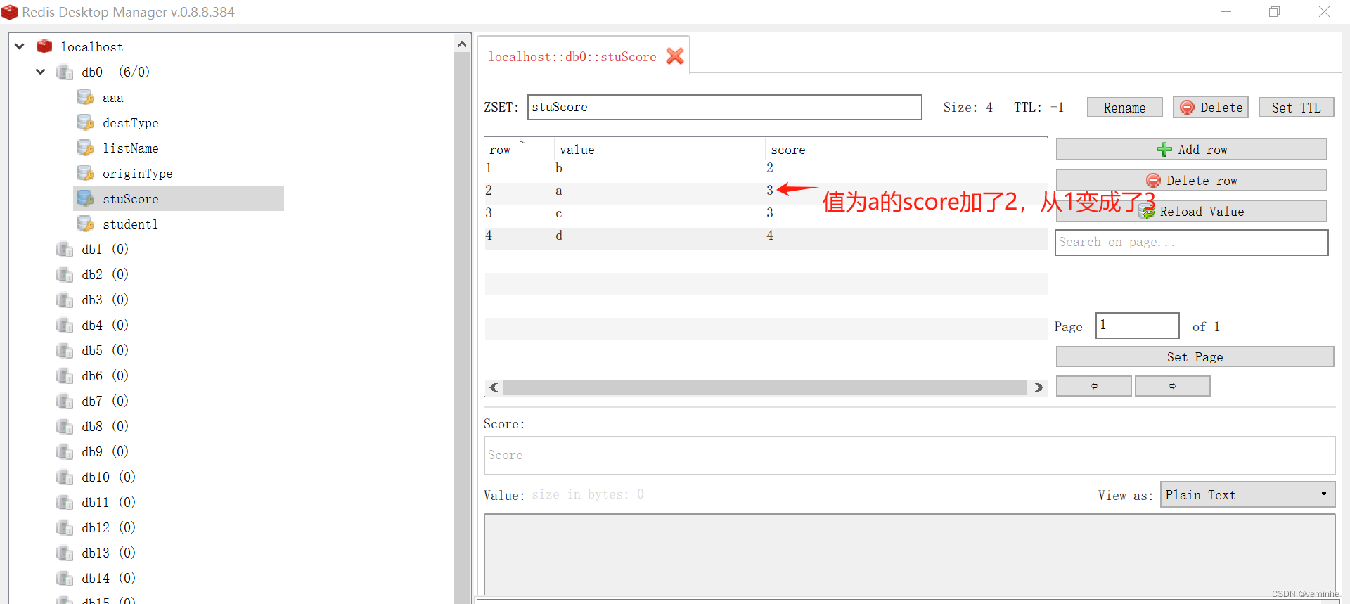 ZINCRBY key increment member 有序集合中对指定成员的分数加上增量 increment。