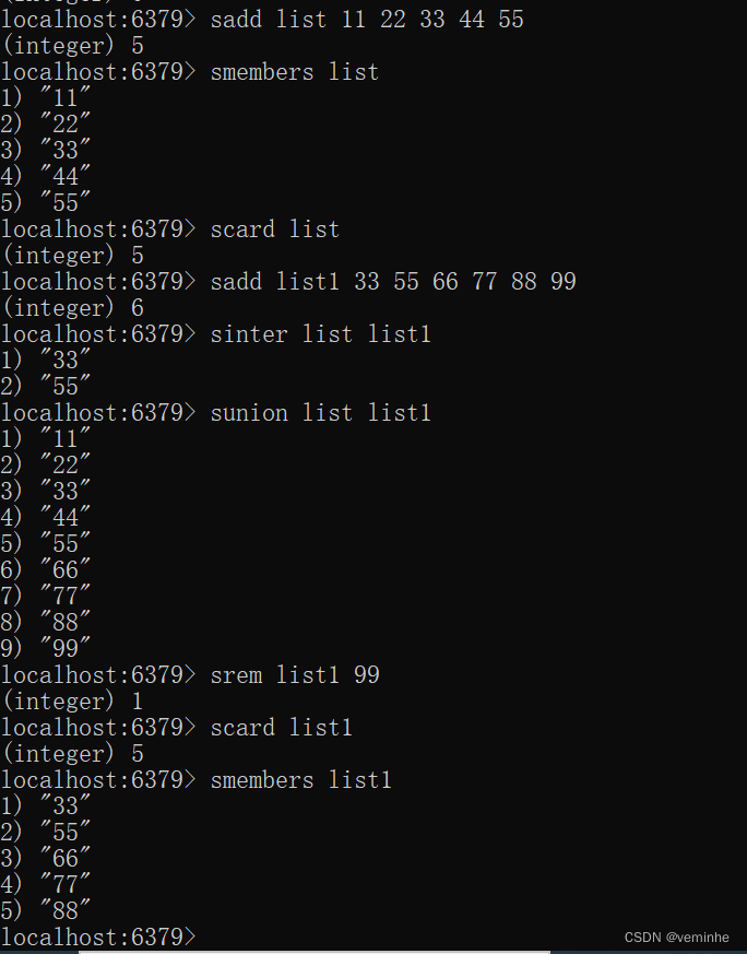 集合操作命令指令开头一般为s开头(SADD 、SMEMBERS 、SCARD 、SINTER 、SUNION 、SREM )