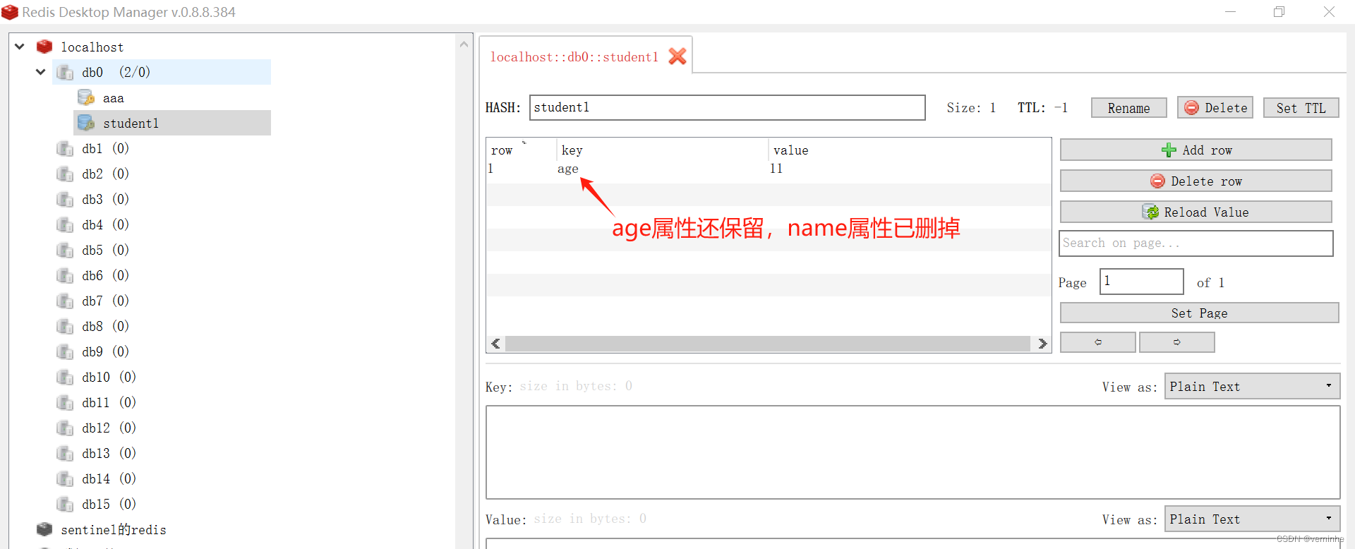 如果student1哈希有2个属性,删除一个属性后,另外那个属性还能看到。如下所示