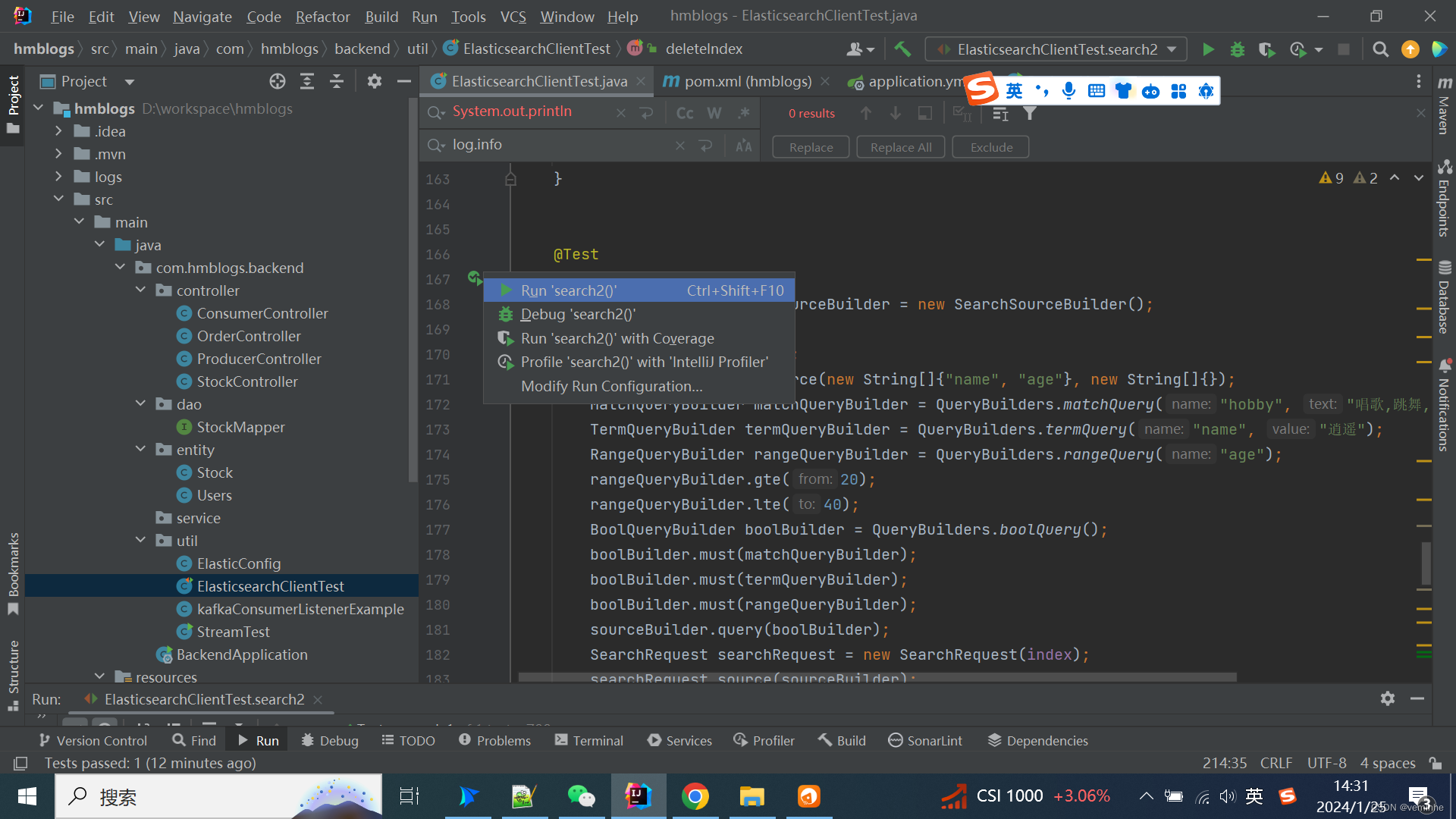 log.info("搜索语句为: " + searchRequest.source().toString());