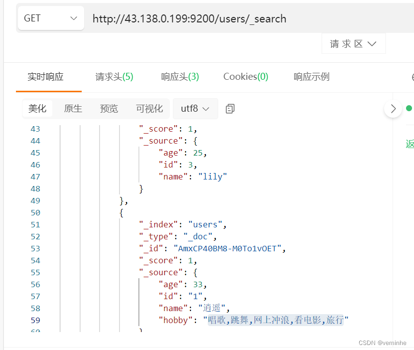 MatchQueryBuilder matchQueryBuilder = QueryBuilders.matchQuery("hobby", "唱歌,跳舞,网上冲浪,看电影,旅行");