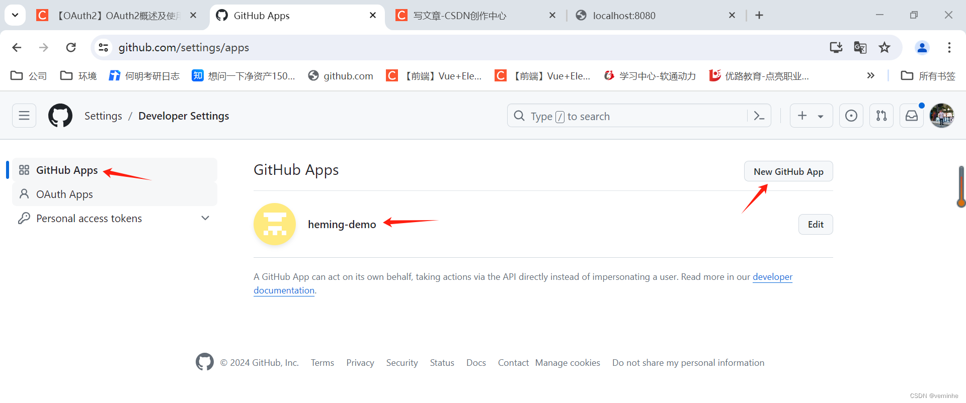 (3)先点击左侧 OAuth Apps ,再点击 New OAuth App