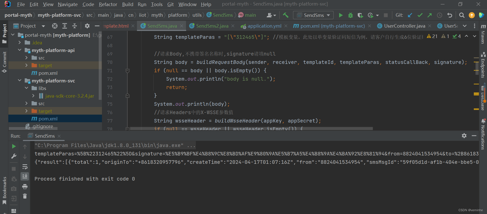 1、参考:Java_消息&短信 MSGSMS_开发指南_代码样例_X-WSSE认证