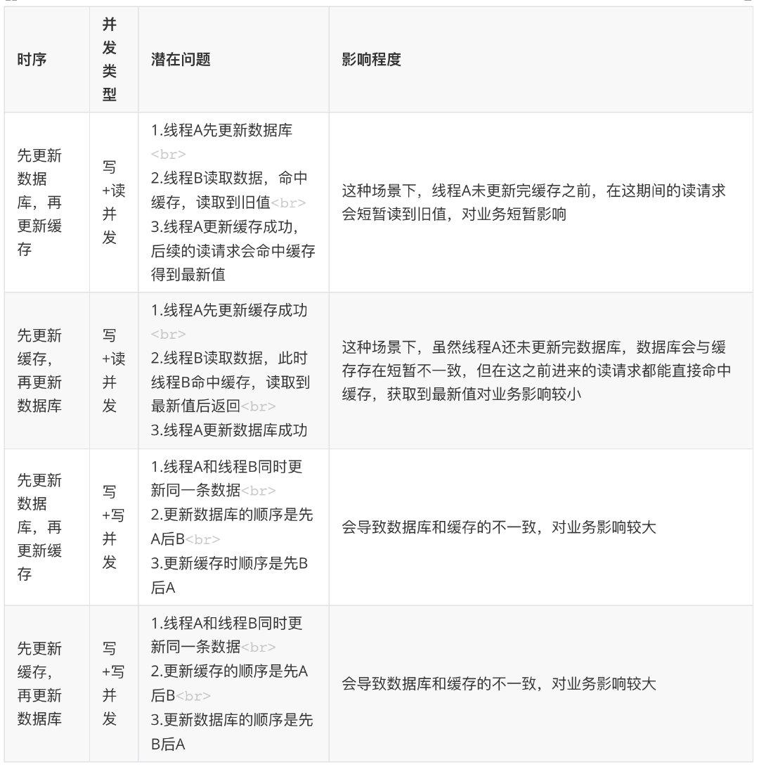 - 更新(修改/删除)数据时 ,会有个时序问题:更新数据库与删除缓存的顺序(这个过程会发生数据不一致性问题)