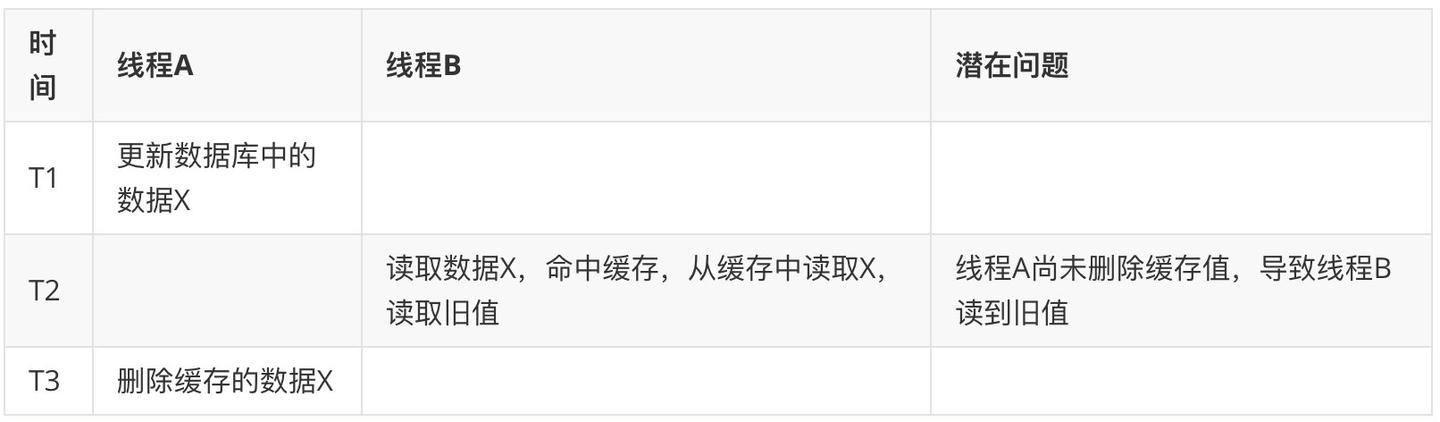 如果线程 A 更新了数据库中的值,但还没来得及删除缓存值,线程 B 就开始读取数据了,那么此时,线程 B 查询缓存时,发现缓存命中,就会直接从缓存中读取旧值。其本质也是,本应后发生的“B 线程-读请求” 先于 “A 线程-删除缓存” 执行并返回了。