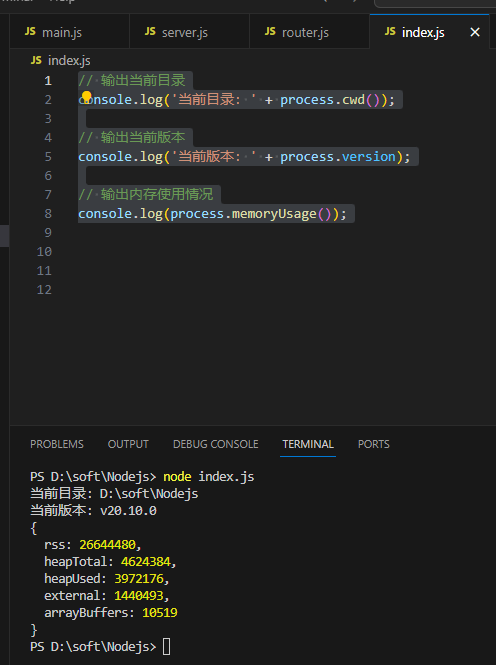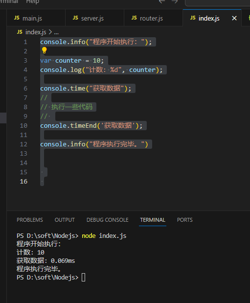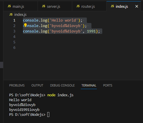 Node.js 沿用了这个标准,提供与习惯行为一致的 console 对象,用于向标准输出流(stdout)或标准错误流(stderr)输出字符。