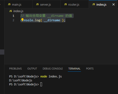 __filename 表示当前正在执行的脚本的文件名。它将输出文件所在位置的绝对路径,且和命令行参数所指定的文件名不一定相同。 如果在模块中,返回的值是模块文件的路径。