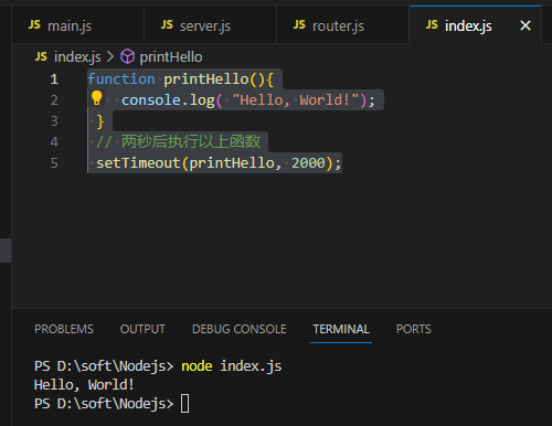 以上程序每隔两秒就会输出一次"Hello, World!",且会永久执行下去,直到你按下 ctrl + c 按钮。