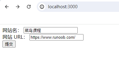 在浏览器中访问 http://localhost:3000/user?name=菜鸟教程&url=www.runoob.com 然后查看返回结果:
