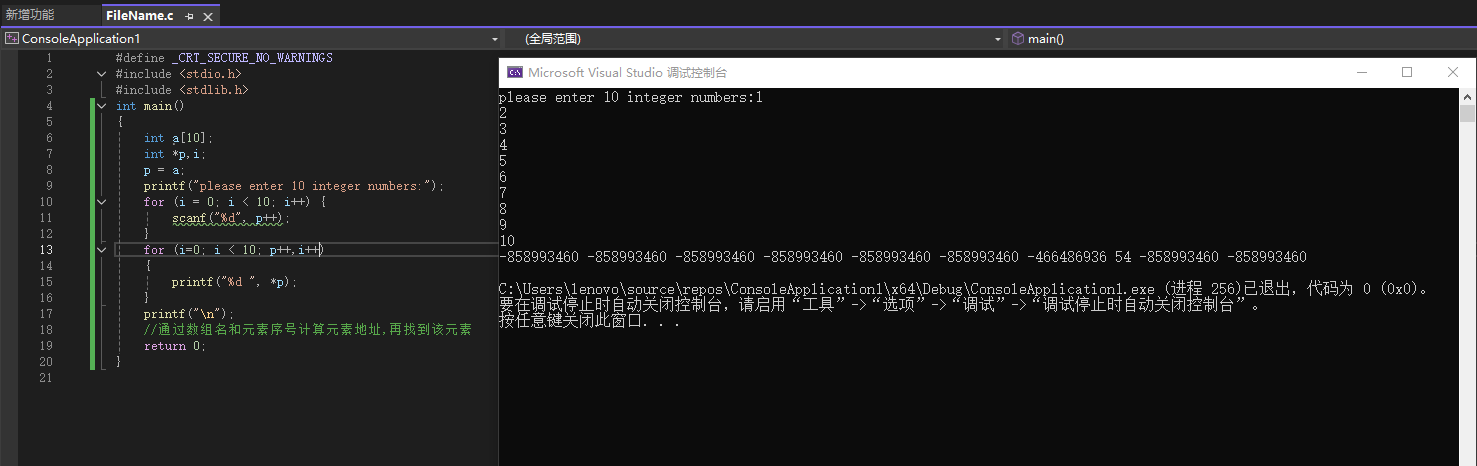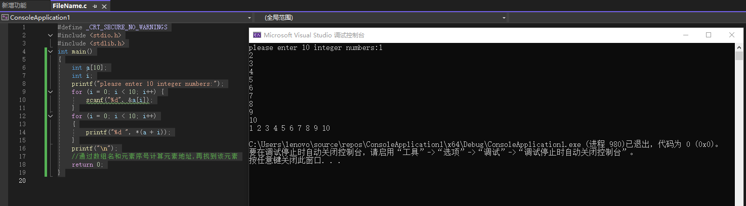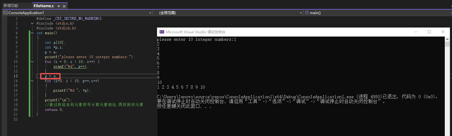 12.1、通过数组名计算数组元素地址,找出元素的值