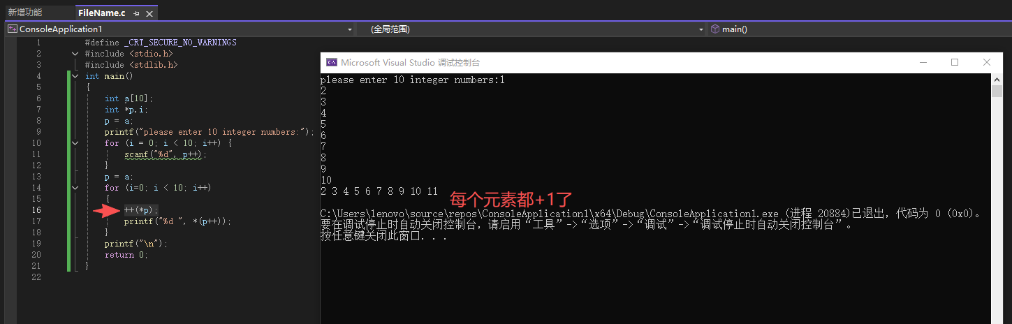 还有一种写法,++(*p);是指*p指向的数组元素其值加1